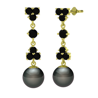 Siyah zirkon ve siyah inci 8 ayar altın küpe