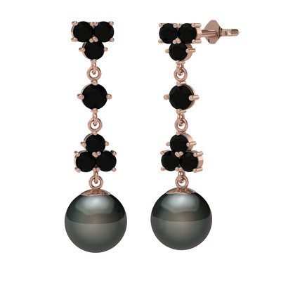 Siyah zirkon ve siyah inci 8 ayar rose altın küpe