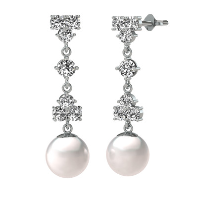 Swarovski ve inci 18 ayar beyaz altın küpe