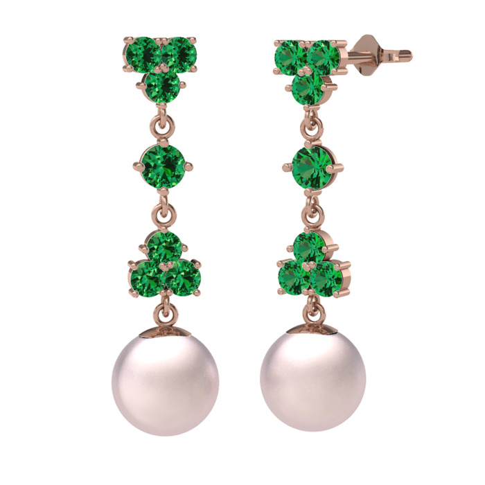 Yeşil kuvars ve pembe inci 18 ayar rose altın küpe