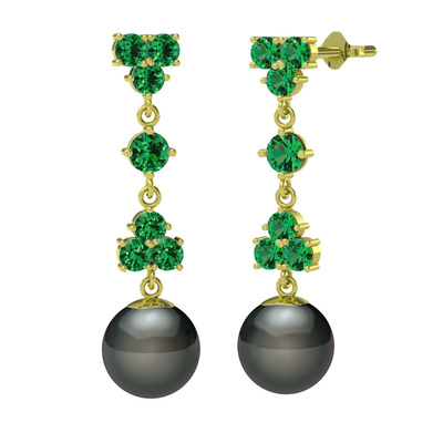 Yeşil kuvars ve siyah inci 925 ayar altın kaplama gümüş küpe