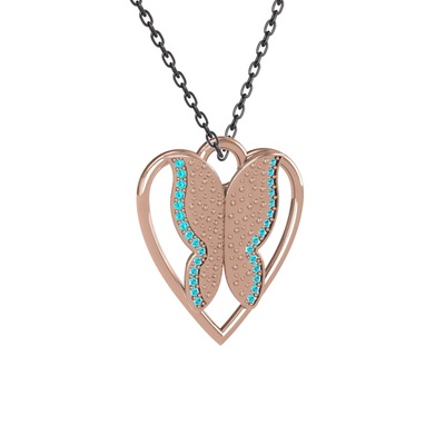 Akuamarin 18 ayar rose altın kolye (40 cm gümüş rolo zincir)