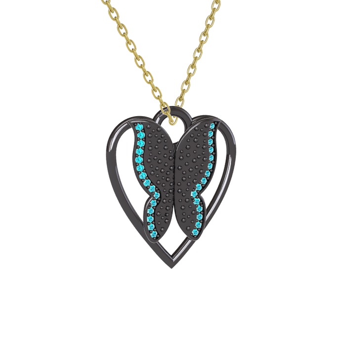 Akuamarin 925 ayar siyah rodyum kaplama gümüş kolye (40 cm altın rolo zincir)