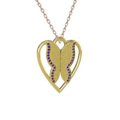 Ametist 14 ayar altın kolye (40 cm gümüş rolo zincir)