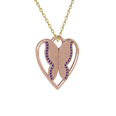 Ametist 8 ayar rose altın kolye (40 cm altın rolo zincir)