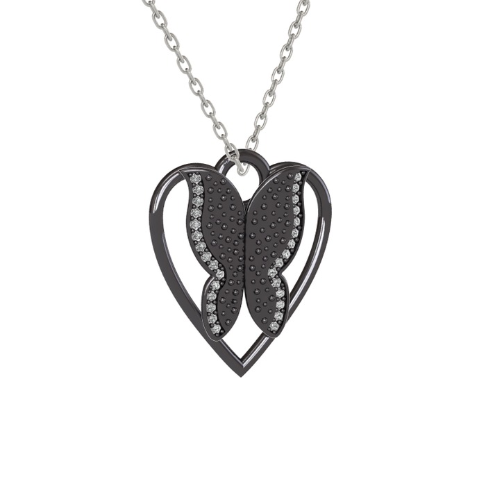 Beyaz zirkon 925 ayar siyah rodyum kaplama gümüş kolye (40 cm gümüş rolo zincir)