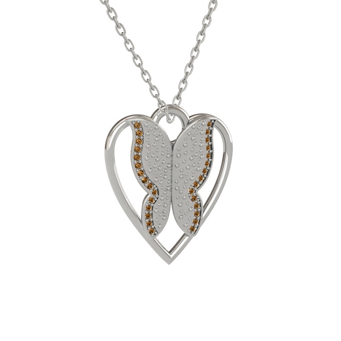 Dumanlı kuvars 14 ayar beyaz altın kolye (40 cm gümüş rolo zincir)