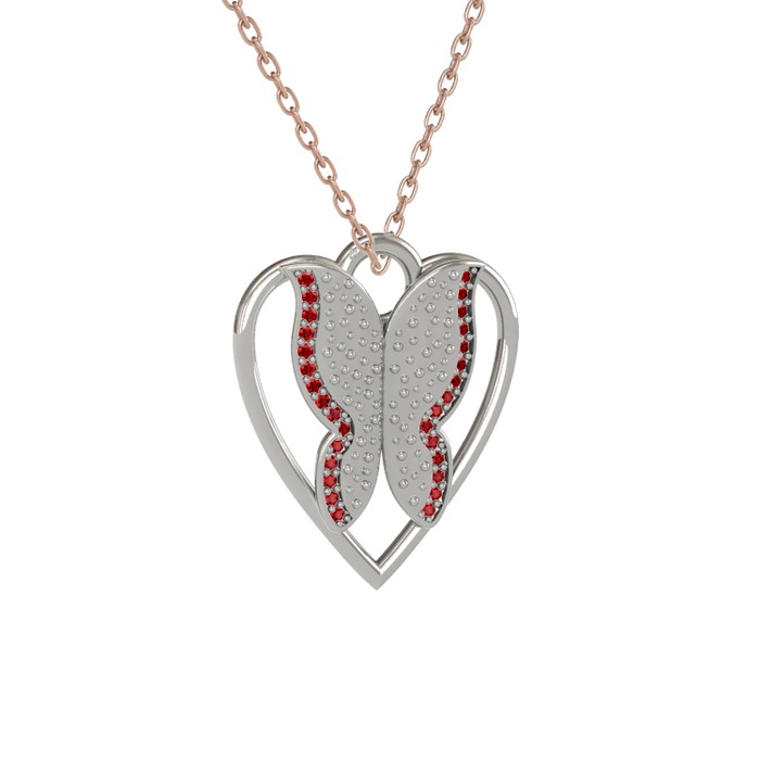 Garnet 14 ayar beyaz altın kolye (40 cm gümüş rolo zincir)