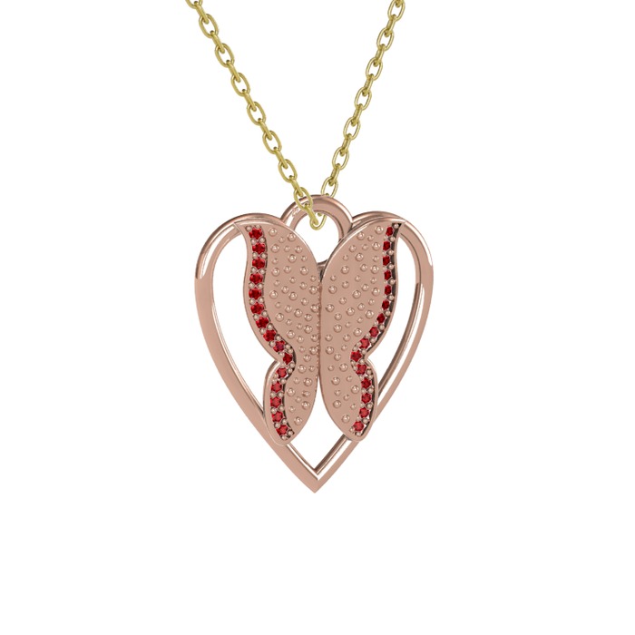 Garnet 925 ayar rose altın kaplama gümüş kolye (40 cm altın rolo zincir)