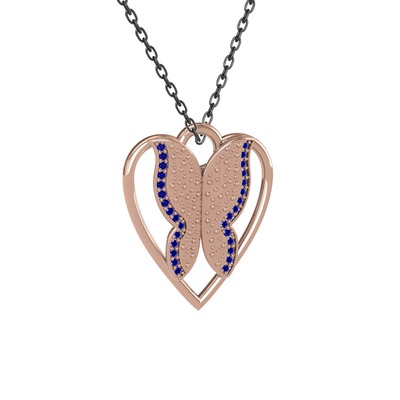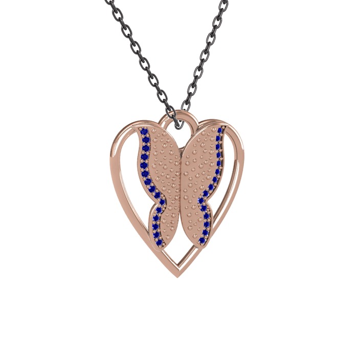 Lab safir 8 ayar rose altın kolye (40 cm gümüş rolo zincir)