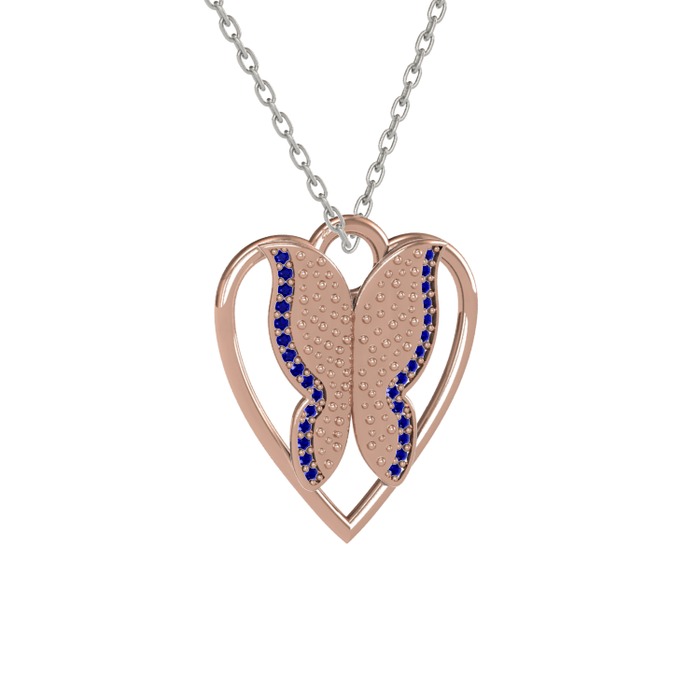 Lab safir 925 ayar rose altın kaplama gümüş kolye (40 cm beyaz altın rolo zincir)