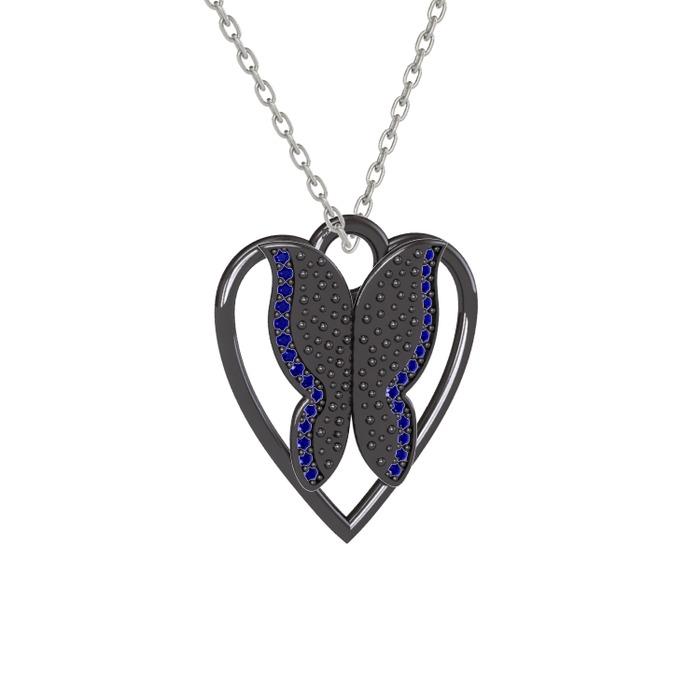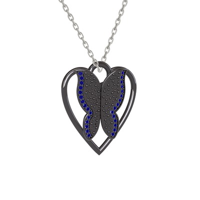 Lab safir 925 ayar siyah rodyum kaplama gümüş kolye (40 cm beyaz altın rolo zincir)