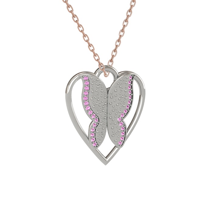 Pembe kuvars 925 ayar gümüş kolye (40 cm rose altın rolo zincir)