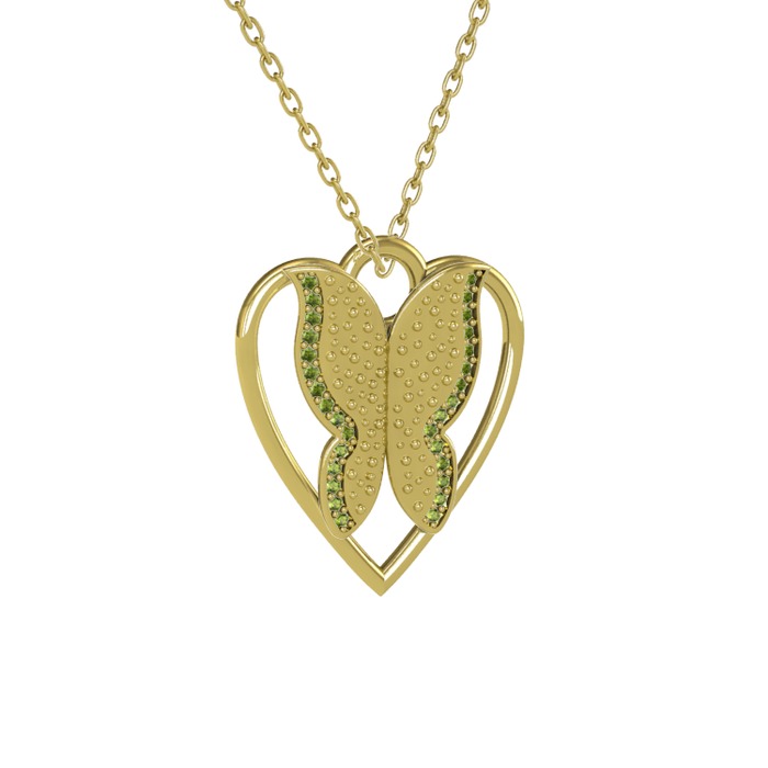Peridot 14 ayar altın kolye (40 cm gümüş rolo zincir)
