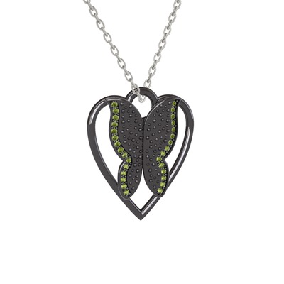 Peridot 925 ayar siyah rodyum kaplama gümüş kolye (40 cm beyaz altın rolo zincir)