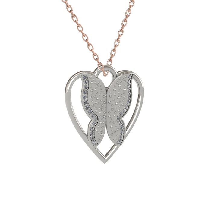 Pırlanta 18 ayar beyaz altın kolye (0.264 karat, 40 cm rose altın rolo zincir)