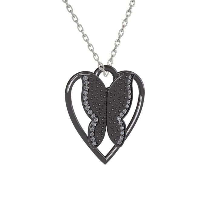 Pırlanta 925 ayar siyah rodyum kaplama gümüş kolye (0.264 karat, 40 cm gümüş rolo zincir)