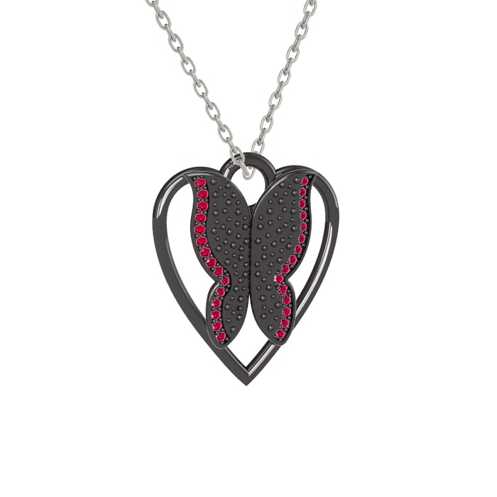 Rodolit garnet 925 ayar siyah rodyum kaplama gümüş kolye (40 cm beyaz altın rolo zincir)