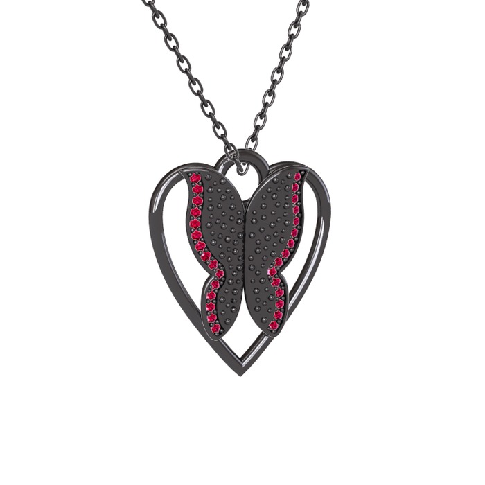 Rodolit garnet 925 ayar siyah rodyum kaplama gümüş kolye (40 cm gümüş rolo zincir)