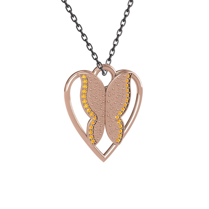 Sitrin 8 ayar rose altın kolye (40 cm gümüş rolo zincir)