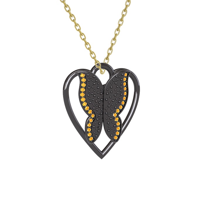 Sitrin 925 ayar siyah rodyum kaplama gümüş kolye (40 cm altın rolo zincir)
