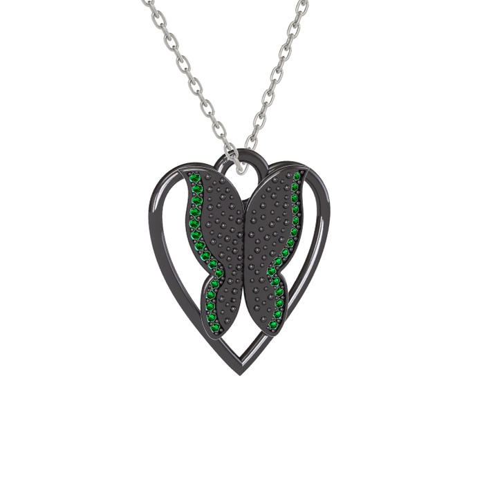 Yeşil kuvars 925 ayar siyah rodyum kaplama gümüş kolye (40 cm gümüş rolo zincir)