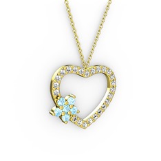 Akuamarin ve swarovski 14 ayar beyaz altın kolye
