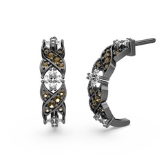 Sitrin ve swarovski 925 ayar siyah rodyum kaplama gümüş küpe