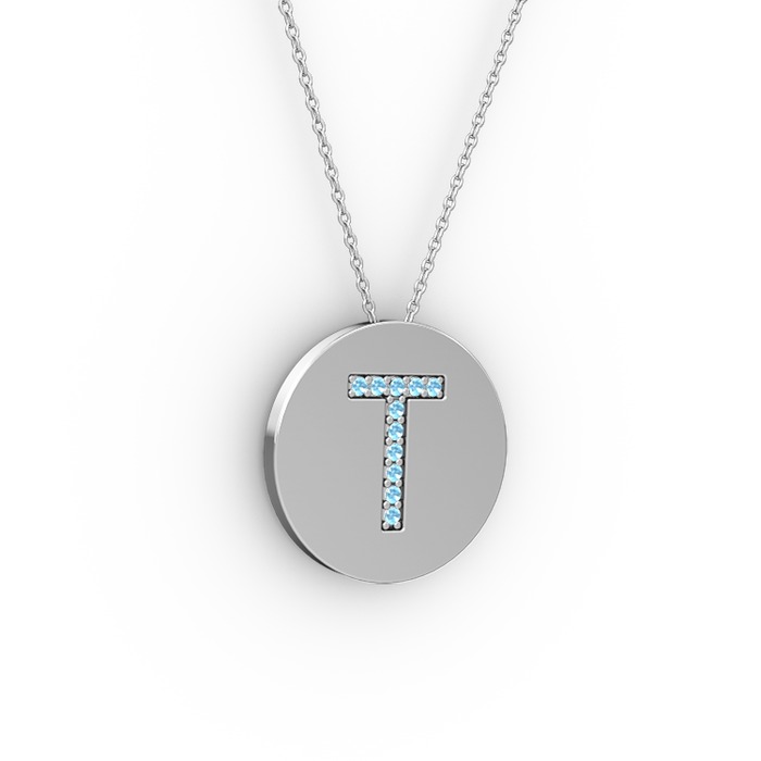 Akuamarin 8 ayar beyaz altın kolye (40 cm gümüş rolo zincir)