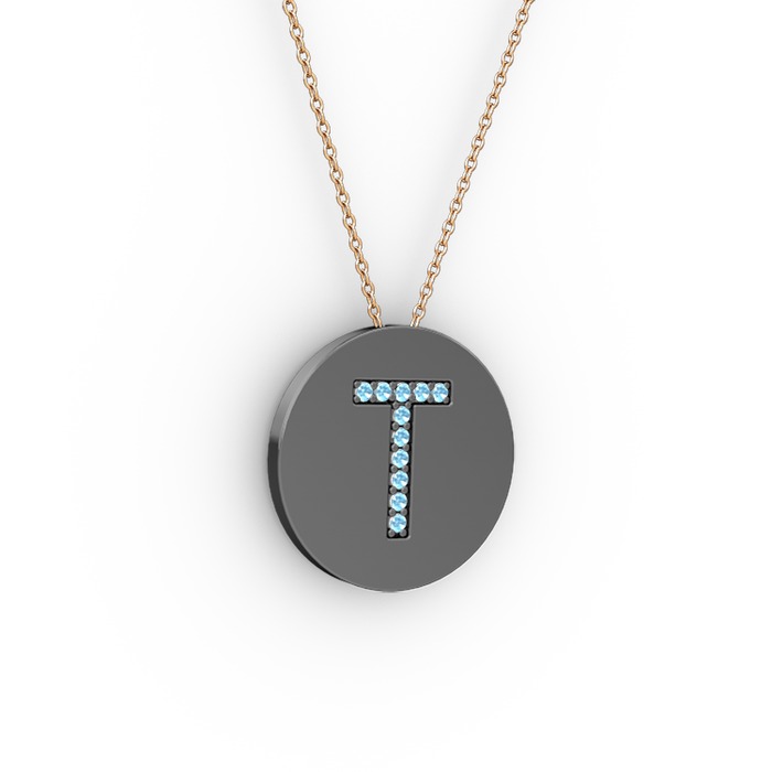 Akuamarin 925 ayar siyah rodyum kaplama gümüş kolye (40 cm rose altın rolo zincir)