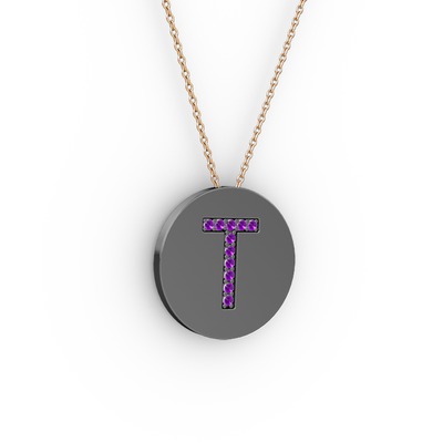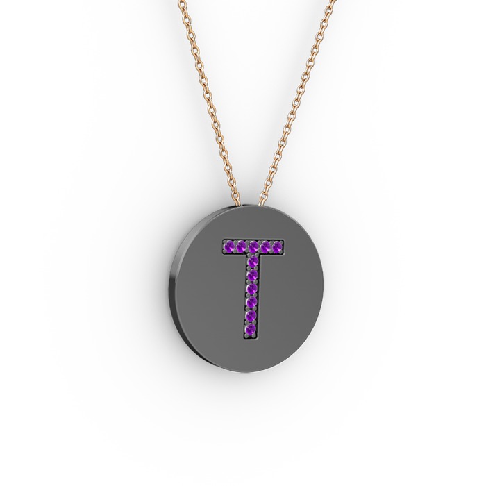 Ametist 925 ayar siyah rodyum kaplama gümüş kolye (40 cm gümüş rolo zincir)