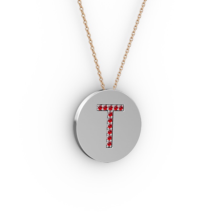 Garnet 14 ayar beyaz altın kolye (40 cm gümüş rolo zincir)