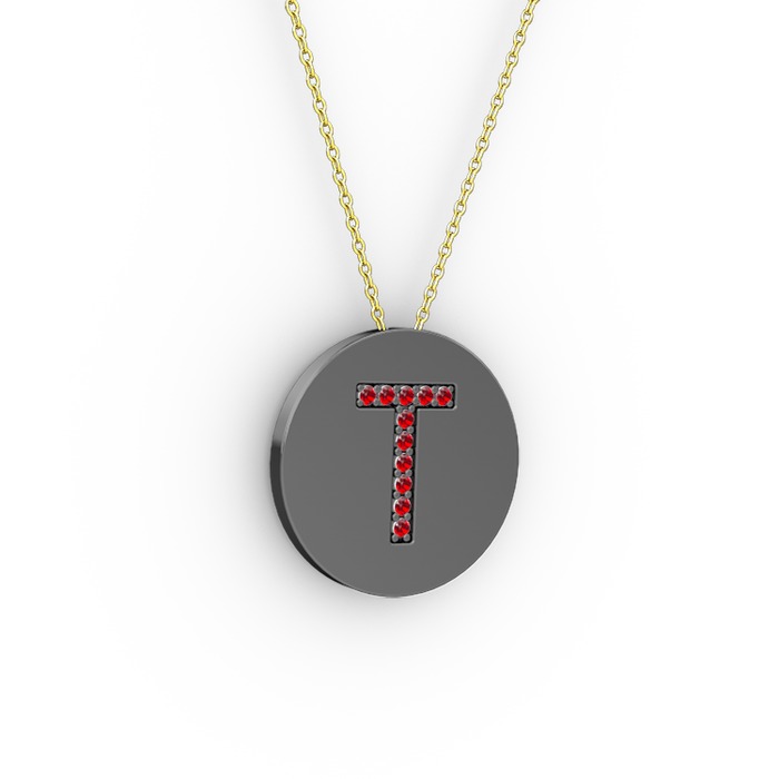 Garnet 925 ayar siyah rodyum kaplama gümüş kolye (40 cm altın rolo zincir)