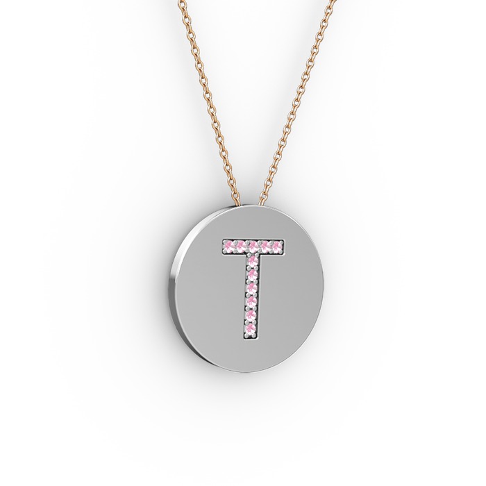 Pembe kuvars 18 ayar beyaz altın kolye (40 cm rose altın rolo zincir)