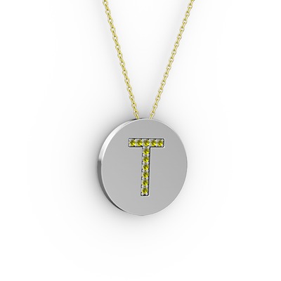 Peridot 14 ayar beyaz altın kolye (40 cm altın rolo zincir)
