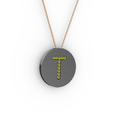 Peridot 925 ayar siyah rodyum kaplama gümüş kolye (40 cm gümüş rolo zincir)