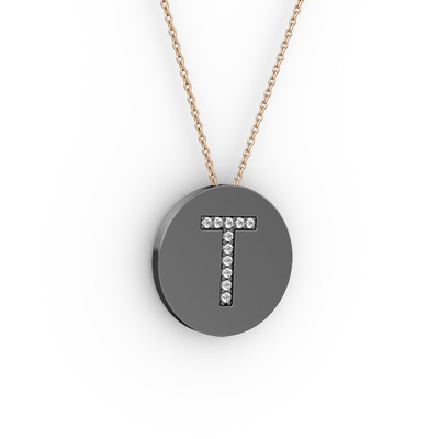 Swarovski 925 ayar siyah rodyum kaplama gümüş kolye (40 cm rose altın rolo zincir)