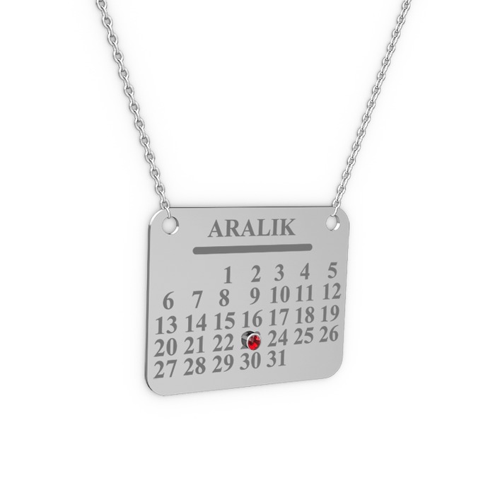 Sizin için unutulmaz ve özel olan tarihi Takvim Kolye ile bir an bile unutmayacaksınız. Not: Sol tarafta bulunan isim yazdırma bölümüne kolyenizde bulunmasını istediğini tarihi yazabilirsiniz. Detaylı Bilgi
