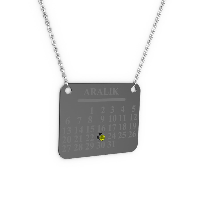 Sizin için unutulmaz ve özel olan tarihi Takvim Kolye ile bir an bile unutmayacaksınız. Not: Sol tarafta bulunan isim yazdırma bölümüne kolyenizde bulunmasını istediğini tarihi yazabilirsiniz. Detaylı Bilgi