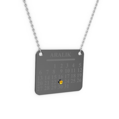 Sizin için unutulmaz ve özel olan tarihi Takvim Kolye ile bir an bile unutmayacaksınız. Not: Sol tarafta bulunan isim yazdırma bölümüne kolyenizde bulunmasını istediğini tarihi yazabilirsiniz. Detaylı Bilgi