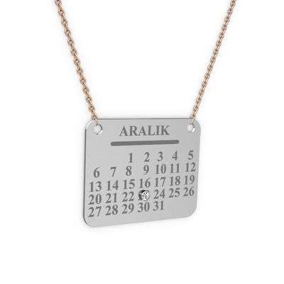 Sizin için unutulmaz ve özel olan tarihi Takvim Kolye ile bir an bile unutmayacaksınız. Not: Sol tarafta bulunan isim yazdırma bölümüne kolyenizde bulunmasını istediğini tarihi yazabilirsiniz. Detaylı Bilgi