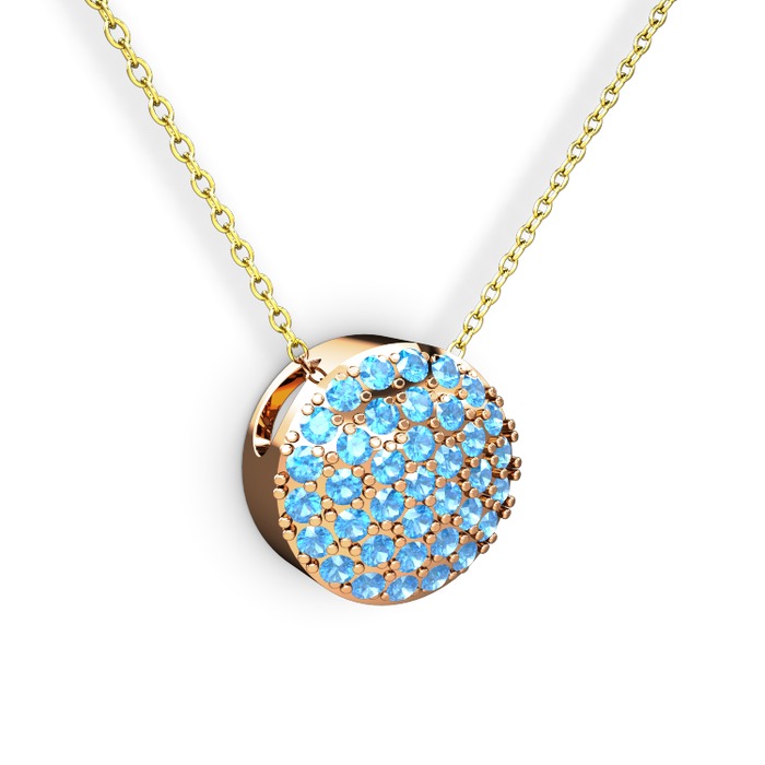 Akuamarin 8 ayar rose altın kolye (40 cm gümüş rolo zincir)