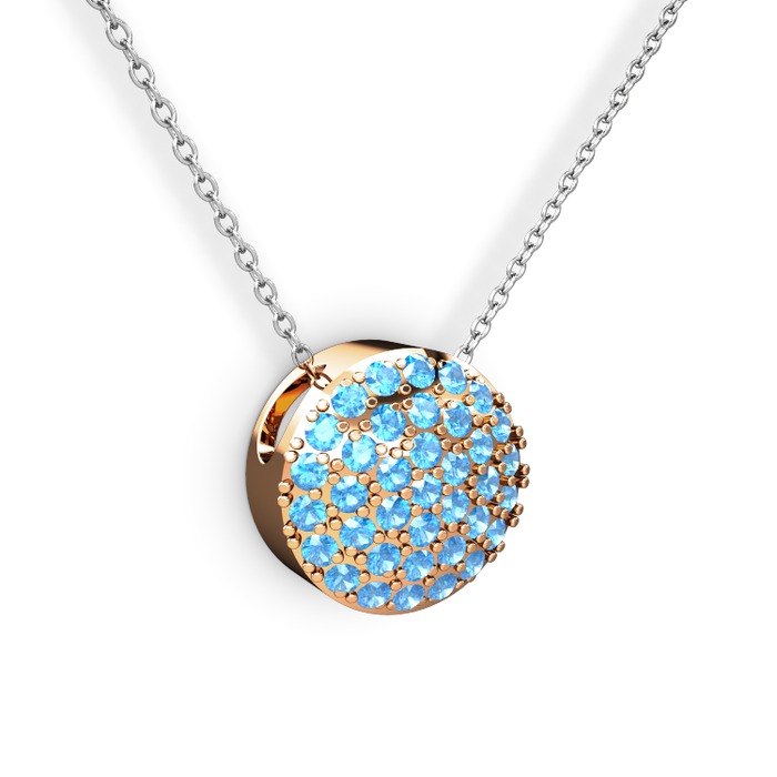 Akuamarin 925 ayar rose altın kaplama gümüş kolye (40 cm beyaz altın rolo zincir)