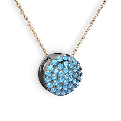 Akuamarin 925 ayar siyah rodyum kaplama gümüş kolye (40 cm rose altın rolo zincir)