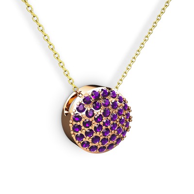 Ametist 18 ayar rose altın kolye (40 cm gümüş rolo zincir)