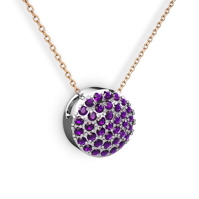 Ametist 925 ayar gümüş kolye (40 cm rose altın rolo zincir)