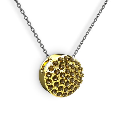 Dumanlı kuvars 14 ayar altın kolye (40 cm gümüş rolo zincir)