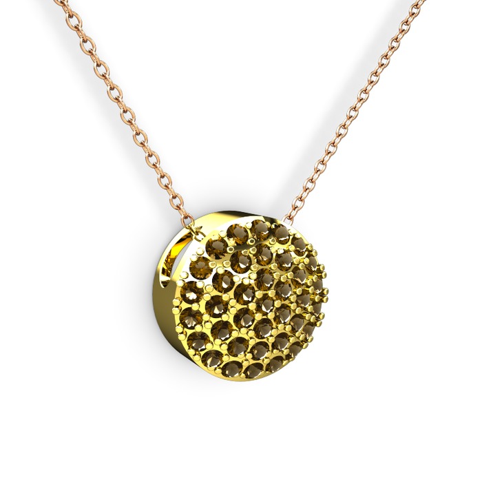 Dumanlı kuvars 14 ayar altın kolye (40 cm rose altın rolo zincir)