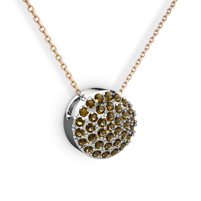 Dumanlı kuvars 14 ayar beyaz altın kolye (40 cm rose altın rolo zincir)