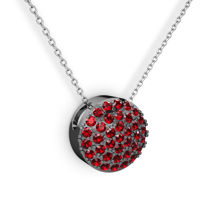 Garnet 925 ayar siyah rodyum kaplama gümüş kolye (40 cm beyaz altın rolo zincir)